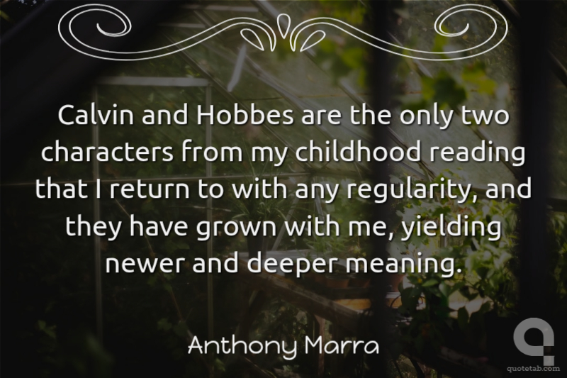 Calvin and Hobbes are the only two characters from my childhood reading that I return to with any regularity, and they have grown with me, yielding newer and deeper meaning.