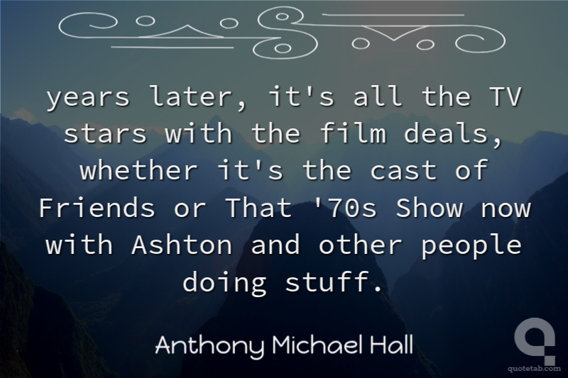years later, it's all the TV stars with the film deals, whether it's the cast of Friends or That '70s Show now with Ashton and other people doing stuff.