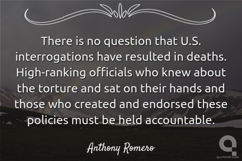 There is no question that US interrogations have resulted in deaths. High-ranking officials who knew about the torture and sat on their hands and those who created and endorsed these policies must be held accountable.