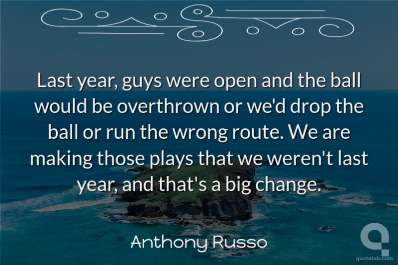 Last year, guys were open and the ball would be overthrown or we'd drop the ball or run the wrong route. We are making those plays that we weren't last year, and that's a big change.