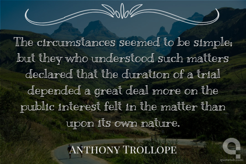 The circumstances seemed to be simple; but they who understood such matters declared that the duration of a trial depended a great deal more on the public interest felt in the matter than upon its own nature.