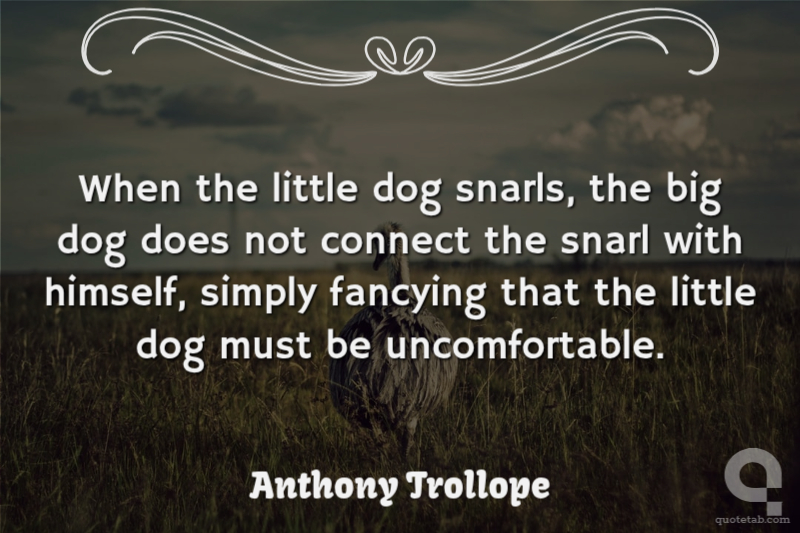 When the little dog snarls, the big dog does not connect the snarl with himself, simply fancying that the little dog must be uncomfortable.