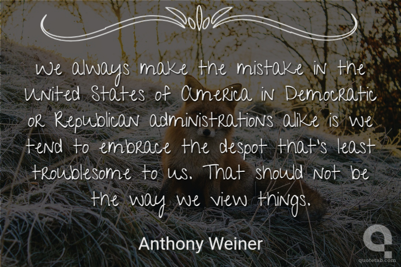 We always make the mistake in the United States of America in Democratic or Republican administrations alike is we tend to embrace the despot that's least troublesome to us. That should not be the way we view things.