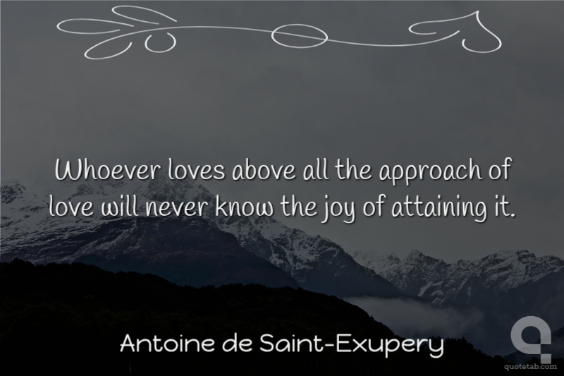 Whoever loves above all the approach of love will never know the joy of attaining it.