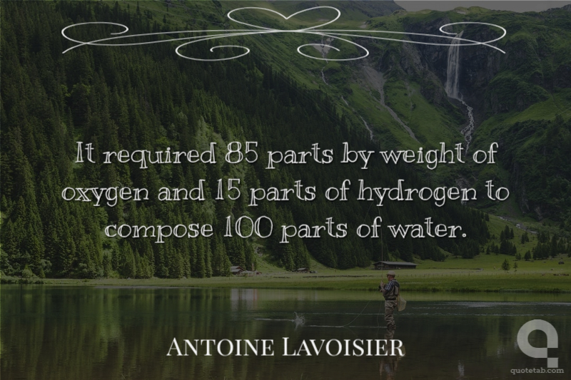 It required 85 parts by weight of oxygen and 15 parts of hydrogen to compose 100 parts of water.