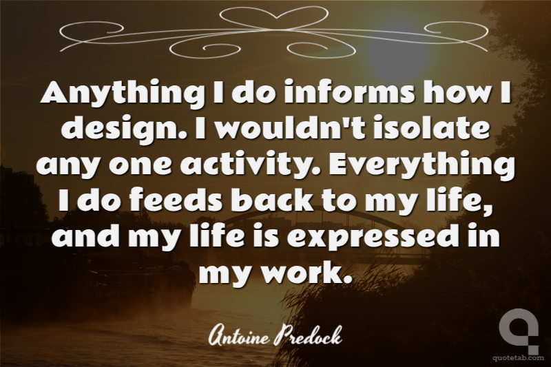 Anything I do informs how I design. I wouldn't isolate any one activity. Everything I do feeds back to my life, and my life is expressed in my work.