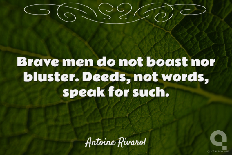 Brave men do not boast nor bluster. Deeds, not words, speak for such.