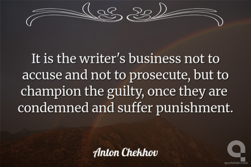 It is the writer's business not to accuse and not to prosecute, but to champion the guilty, once they are condemned and suffer punishment.