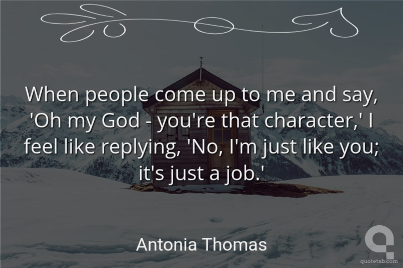 When people come up to me and say, 'Oh my God - you're that character,' I feel like replying, 'No, I'm just like you; it's just a job.'