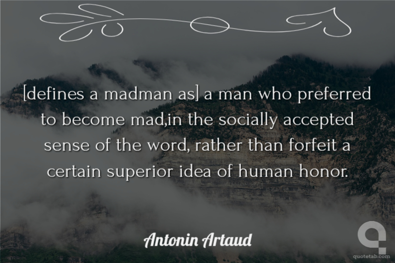 [defines a madman as] a man who preferred to become mad,in the socially accepted sense of the word, rather than forfeit a certain superior idea of human honor.