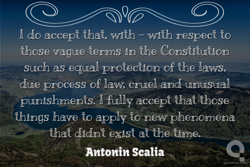 I do accept that, with - with respect to those vague terms in the Constitution such as equal protection of the laws, due process of law, cruel and unusual punishments. I fully accept that those things have to apply to new phenomena that didn't exist at the time.