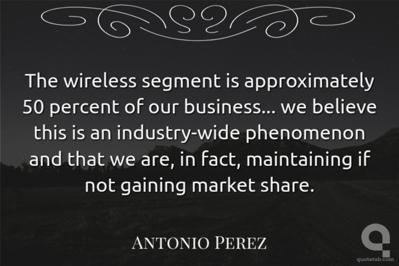 The wireless segment is approximately 50 percent of our business... we believe this is an industry-wide phenomenon and that we are, in fact, maintaining if not gaining market share.
