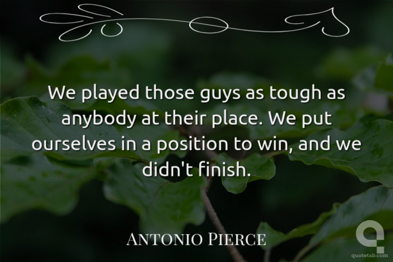 We played those guys as tough as anybody at their place. We put ourselves in a position to win, and we didn't finish.