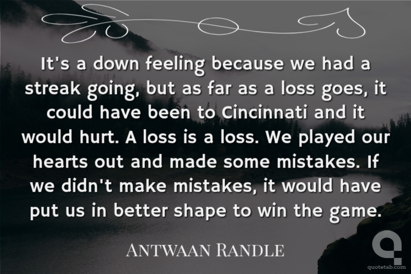It's a down feeling because we had a streak going, but as far as a loss goes, it could have been to Cincinnati and it would hurt. A loss is a loss. We played our hearts out and made some mistakes. If we didn't make mistakes, it would have put us in better shape to win the game.