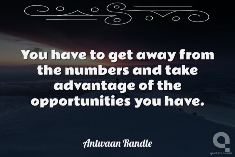 You have to get away from the numbers and take advantage of the opportunities you have.