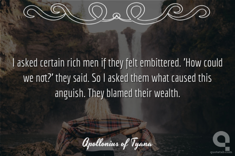 I asked certain rich men if they felt embittered. 'How could we not?' they said. So I asked them what caused this anguish. They blamed their wealth.