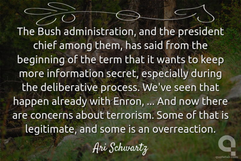 The Bush administration, and the president chief among them, has said from the beginning of the term that it wants to keep more information secret, especially during the deliberative process. We've seen that happen already with Enron, ... And now there are concerns about terrorism. Some of that is legitimate, and some is an overreaction.