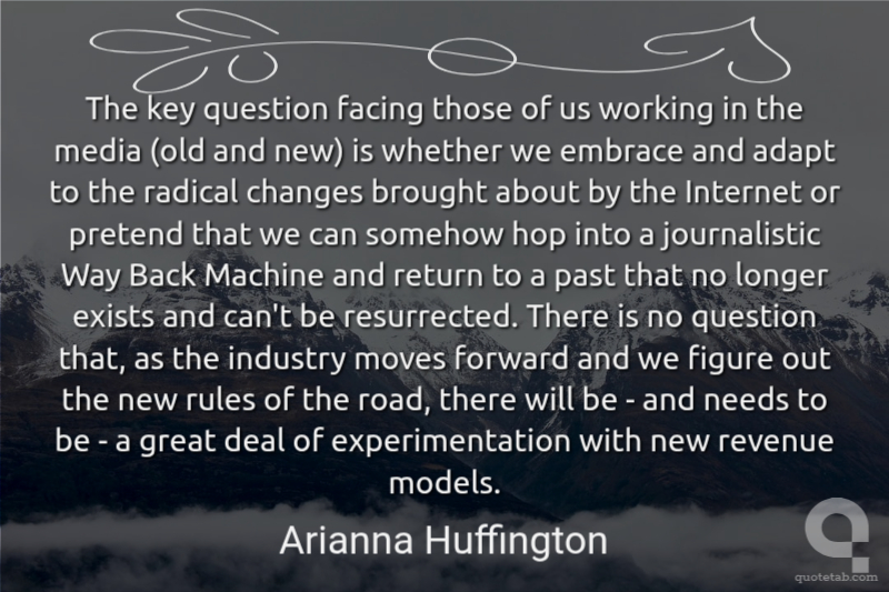 The key question facing those of us working in the media (old and new) is whether we embrace and adapt to the radical changes brought about by the Internet or pretend that we can somehow hop into a journalistic Way Back Machine and return to a past that no longer exists and can't be resurrected. There is no question that, as the industry moves forward and we figure out the new rules of the road, there will be - and needs to be - a great deal of experimentation with new revenue models.
