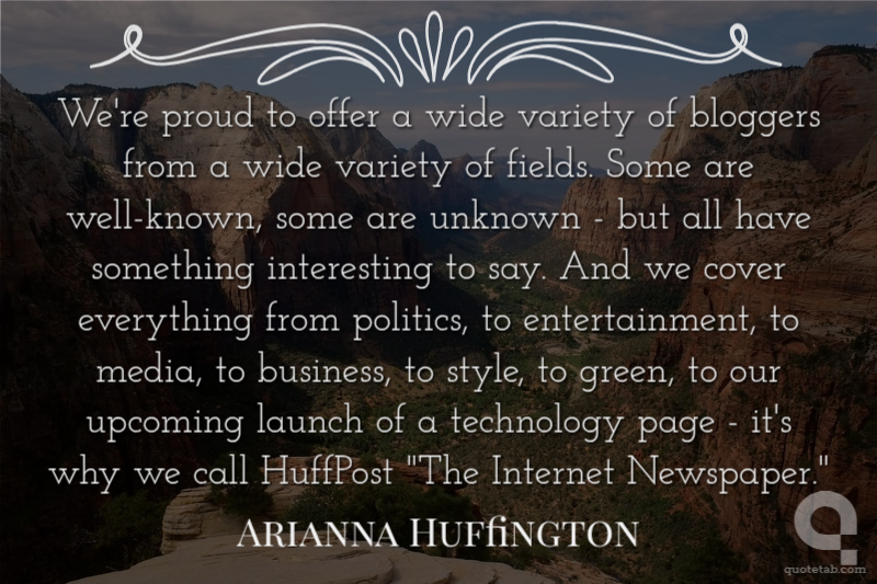 We're proud to offer a wide variety of bloggers from a wide variety of fields. Some are well-known, some are unknown - but all have something interesting to say. And we cover everything from politics, to entertainment, to media, to business, to style, to green, to our upcoming launch of a technology page - it's why we call HuffPost "The Internet Newspaper."