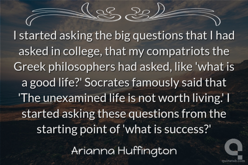 I started asking the big questions that I had asked in college, that my compatriots the Greek philosophers had asked, like 'what is a good life?' Socrates famously said that 'The unexamined life is not worth living.' I started asking these questions from the starting point of 'what is success?'
