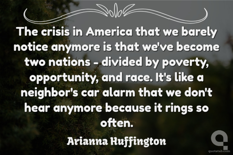 The crisis in America that we barely notice anymore is that we've become two nations - divided by poverty, opportunity, and race. It's like a neighbor's car alarm that we don't hear anymore because it rings so often.