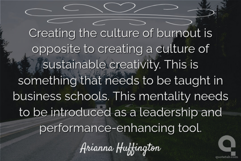 Creating the culture of burnout is opposite to creating a culture of sustainable creativity. This is something that needs to be taught in business schools. This mentality needs to be introduced as a leadership and performance-enhancing tool.