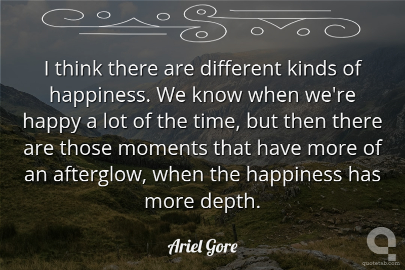 I think there are different kinds of happiness. We know when we're happy a lot of the time, but then there are those moments that have more of an afterglow, when the happiness has more depth.