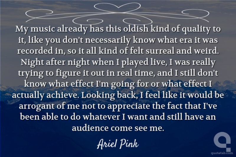 My music already has this oldish kind of quality to it, like you don't necessarily know what era it was recorded in, so it all kind of felt surreal and weird. Night after night when I played live, I was really trying to figure it out in real time, and I still don't know what effect I'm going for or what effect I actually achieve. Looking back, I feel like it would be arrogant of me not to appreciate the fact that I've been able to do whatever I want and still have an audience come see me.