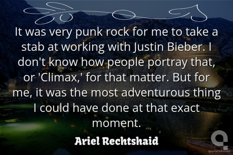 It was very punk rock for me to take a stab at working with Justin Bieber. I don't know how people portray that, or 'Climax,' for that matter. But for me, it was the most adventurous thing I could have done at that exact moment.