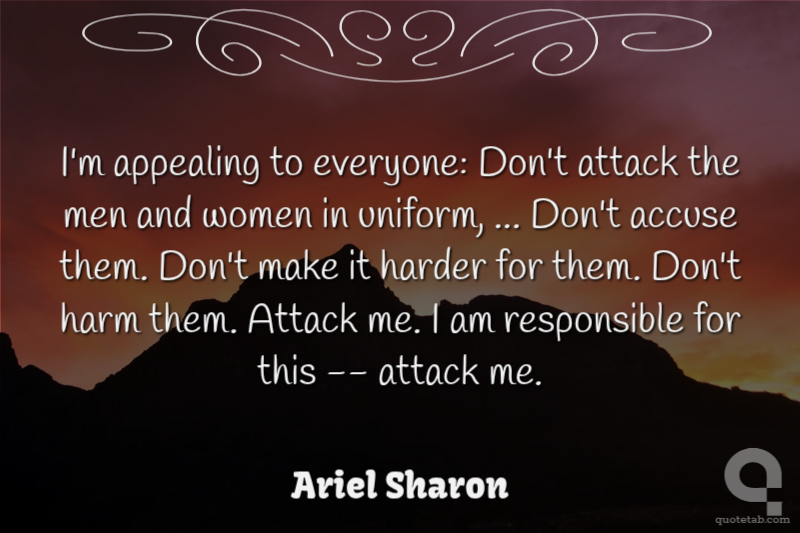 I'm appealing to everyone: Don't attack the men and women in uniform, ... Don't accuse them. Don't make it harder for them. Don't harm them. Attack me. I am responsible for this -- attack me.