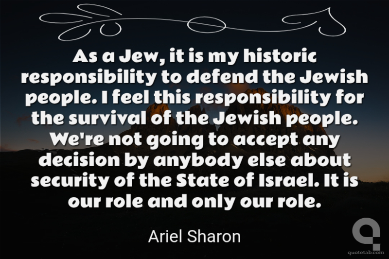 As a Jew, it is my historic responsibility to defend the Jewish people. I feel this responsibility for the survival of the Jewish people. We're not going to accept any decision by anybody else about security of the State of Israel. It is our role and only our role.