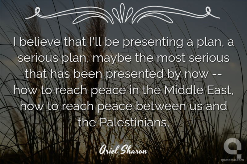I believe that I'll be presenting a plan, a serious plan, maybe the most serious that has been presented by now -- how to reach peace in the Middle East, how to reach peace between us and the Palestinians,