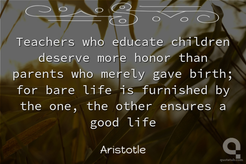 Teachers who educate children deserve more honor than parents who merely gave birth; for bare life is furnished by the one, the other ensures a good life