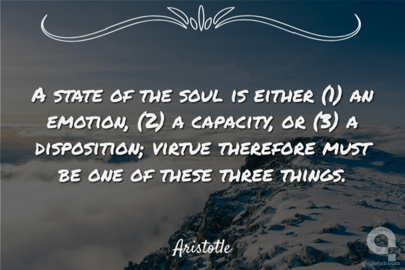 A state of the soul is either (1) an emotion, (2) a capacity, or (3) a disposition; virtue therefore must be one of these three things.