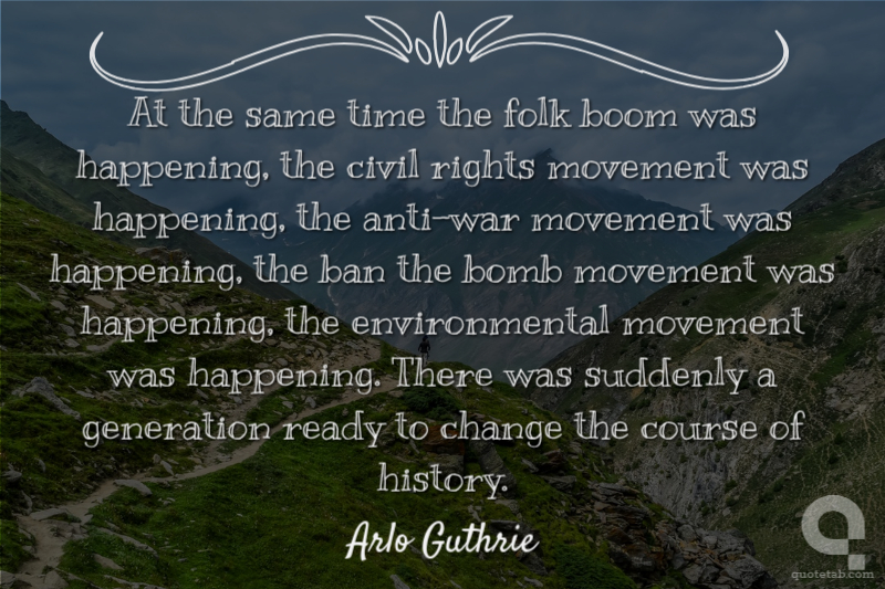 At the same time the folk boom was happening, the civil rights movement was happening, the anti-war movement was happening, the ban the bomb movement was happening, the environmental movement was happening. There was suddenly a generation ready to change the course of history.