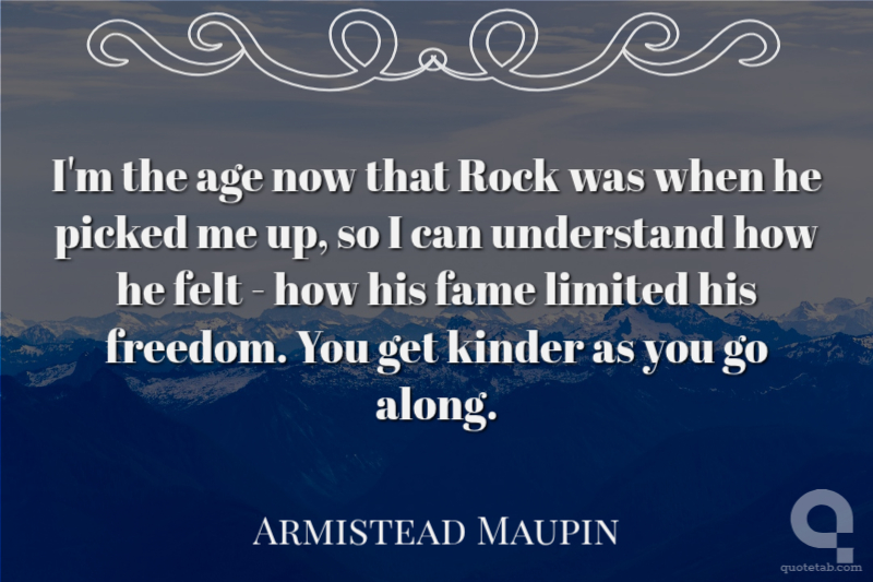 I'm the age now that Rock was when he picked me up, so I can understand how he felt - how his fame limited his freedom. You get kinder as you go along.