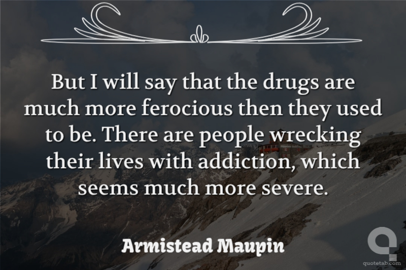 But I will say that the drugs are much more ferocious then they used to be. There are people wrecking their lives with addiction, which seems much more severe.