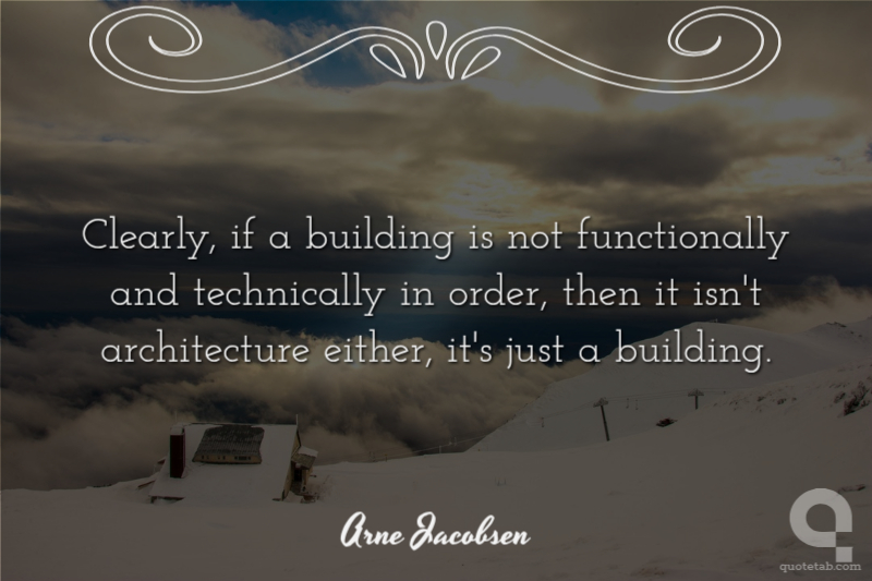 Clearly, if a building is not functionally and technically in order, then it isn't architecture either, it's just a building.