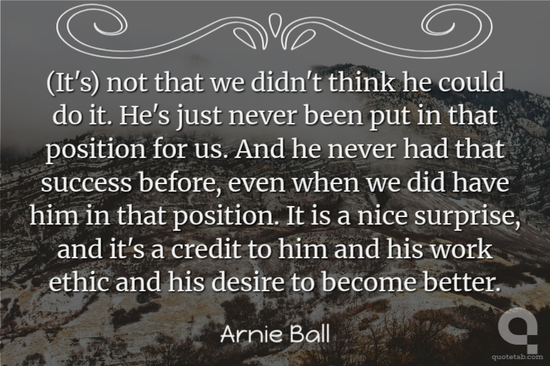 (It's) not that we didn't think he could do it. He's just never been put in that position for us. And he never had that success before, even when we did have him in that position. It is a nice surprise, and it's a credit to him and his work ethic and his desire to become better.