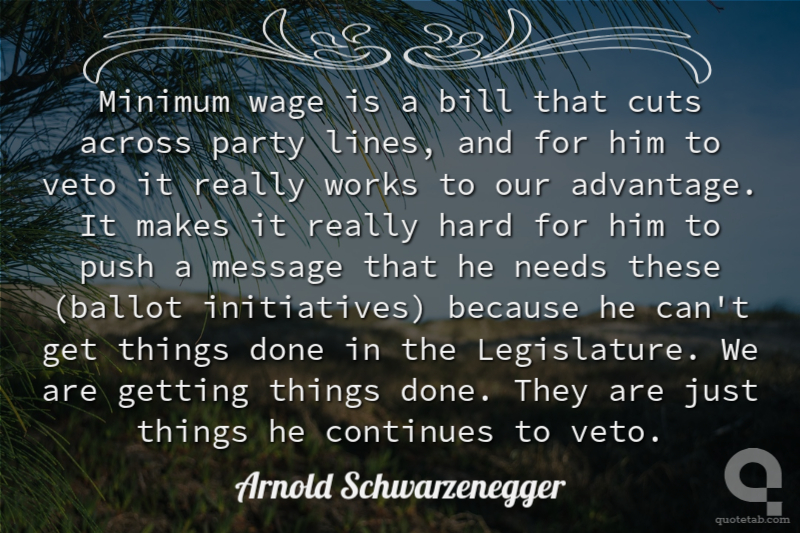 Minimum wage is a bill that cuts across party lines, and for him to veto it really works to our advantage. It makes it really hard for him to push a message that he needs these (ballot initiatives) because he can't get things done in the Legislature. We are getting things done. They are just things he continues to veto.