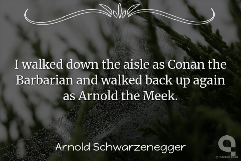 I walked down the aisle as Conan the Barbarian and walked back up again as Arnold the Meek.