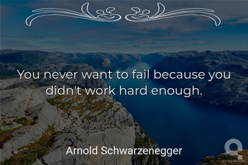 You never want to fail because you didn't work hard enough.