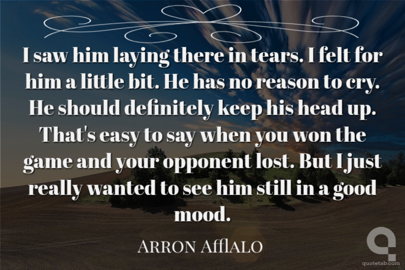 I saw him laying there in tears. I felt for him a little bit. He has no reason to cry. He should definitely keep his head up. That's easy to say when you won the game and your opponent lost. But I just really wanted to see him still in a good mood.