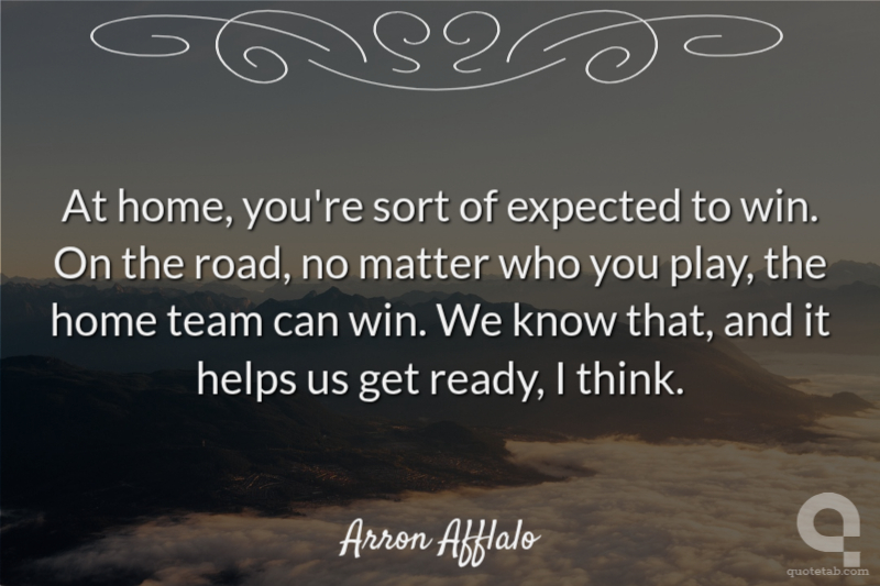 At home, you're sort of expected to win. On the road, no matter who you play, the home team can win. We know that, and it helps us get ready, I think.