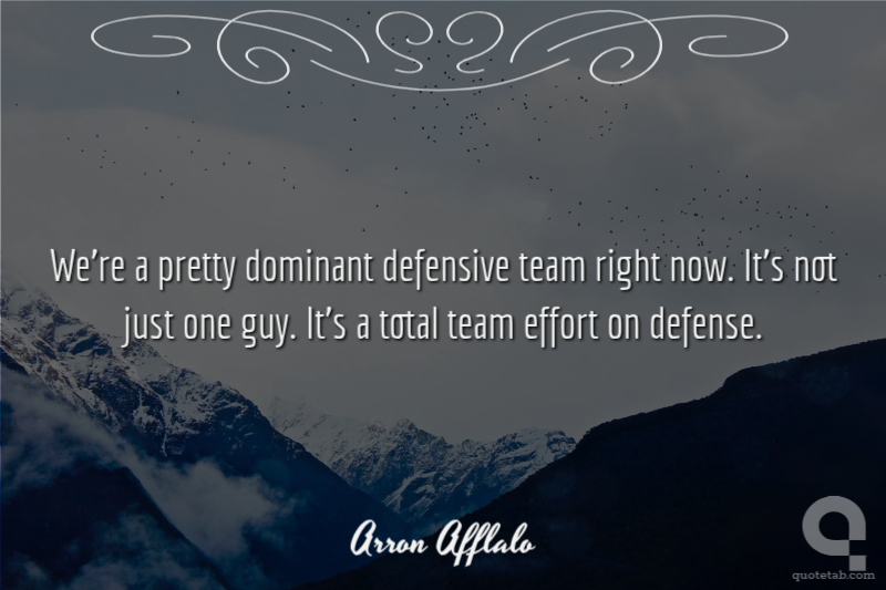 We're a pretty dominant defensive team right now. It's not just one guy. It's a total team effort on defense.
