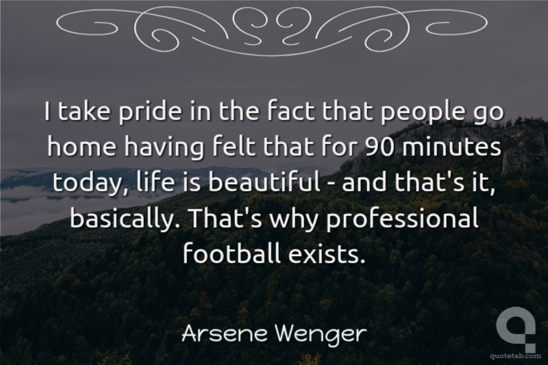 I take pride in the fact that people go home having felt that for 90 minutes today, life is beautiful - and that's it, basically. That's why professional football exists.