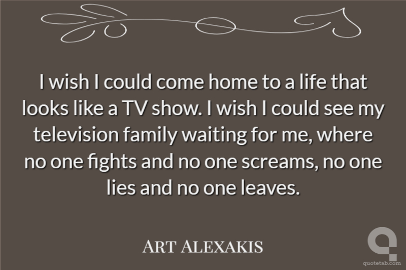I wish I could come home to a life that looks like a TV show. I wish I could see my television family waiting for me, where no one fights and no one screams, no one lies and no one leaves.