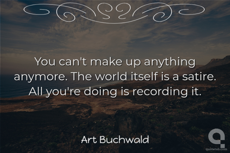 You can't make up anything anymore. The world itself is a satire. All you're doing is recording it.