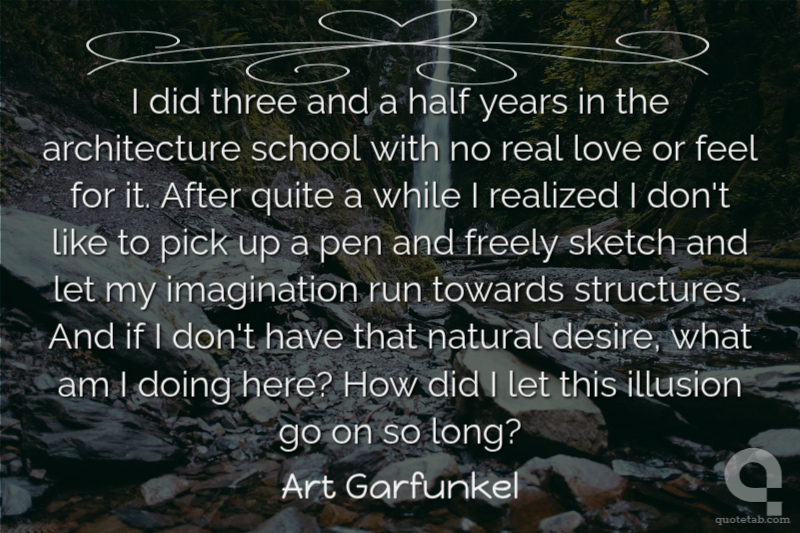 I did three and a half years in the architecture school with no real love or feel for it. After quite a while I realized I don't like to pick up a pen and freely sketch and let my imagination run towards structures. And if I don't have that natural desire, what am I doing here? How did I let this illusion go on so long?
