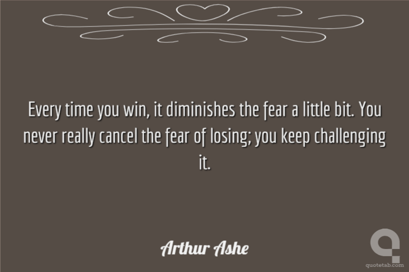 Every time you win, it diminishes the fear a little bit. You never really cancel the fear of losing; you keep challenging it.